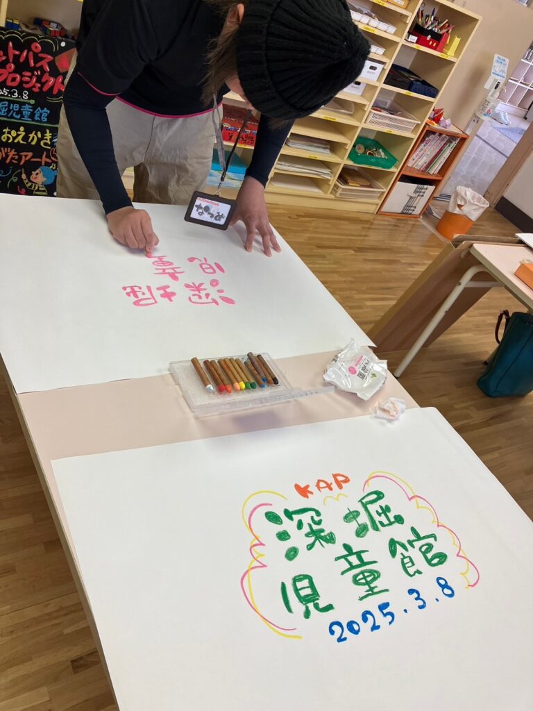 深堀児童館さんは大きな窓があって、外からもお絵描きできるので外からもお絵描きする子も!